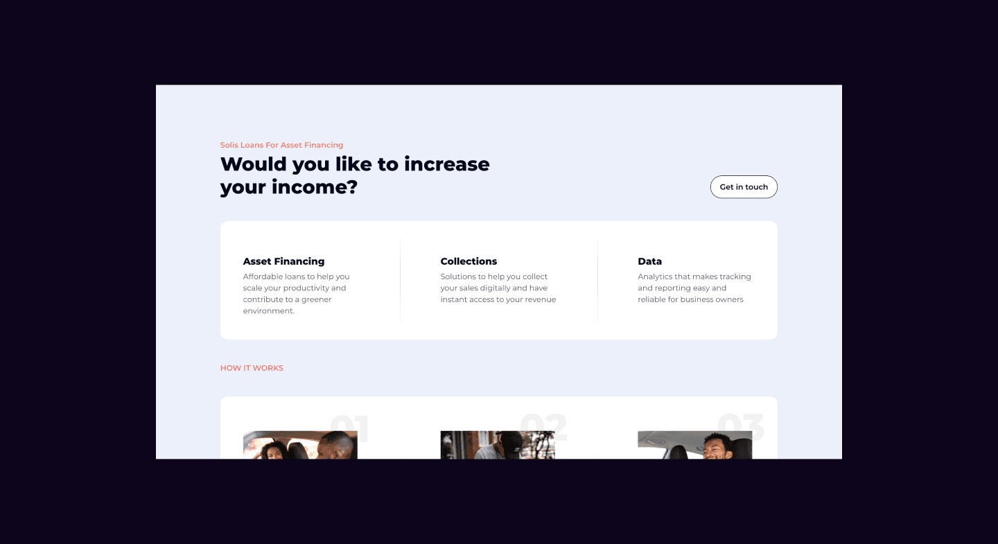 Solis Finance wanted a financial platform that simplified investing and appealed to a modern audience. The primary challenge was presenting complex financial offerings in an intuitive and engaging way to build user trust.